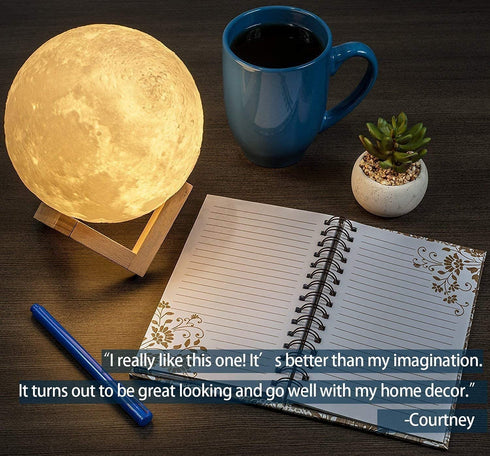- 【Excellent performance】Give off a comfortable cool white (6000K), warm yellow (3000K) and Yellow (2700K) illumination, short touch to turn on/off the moon light and long touch will help you to adjust the brightness. Our 3D print moon light offer you an impressively wide 360 degree beam angle.